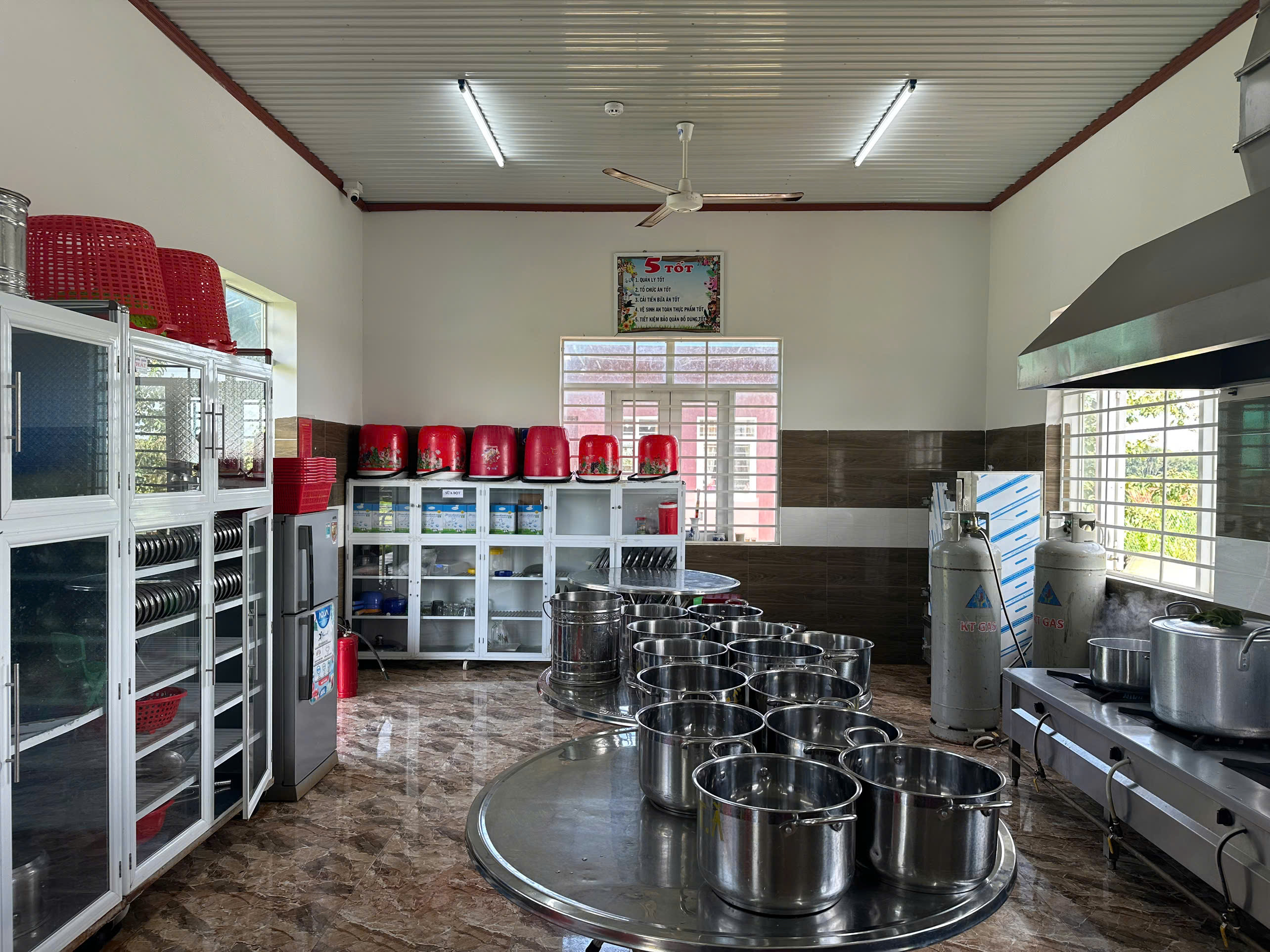 Hệ thống bếp ăn đạt chuẩn vệ sinh an toàn thực phẩm, thực đơn được xây dựng khoa học, đảm bảo dinh dưỡng và đa dạng, giúp trẻ phát triển thể chất khỏe mạnh, năng động.