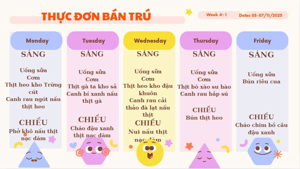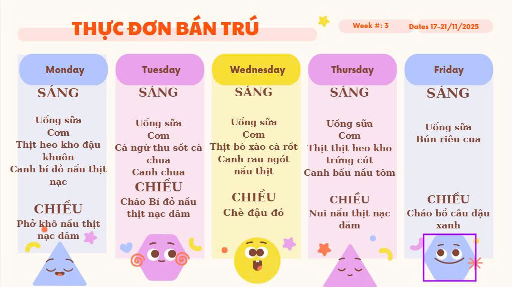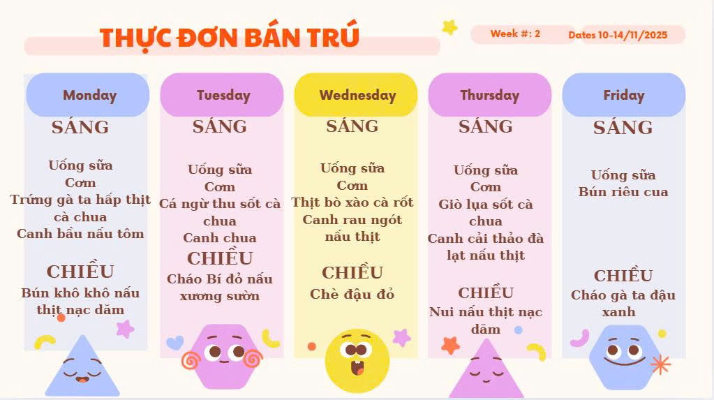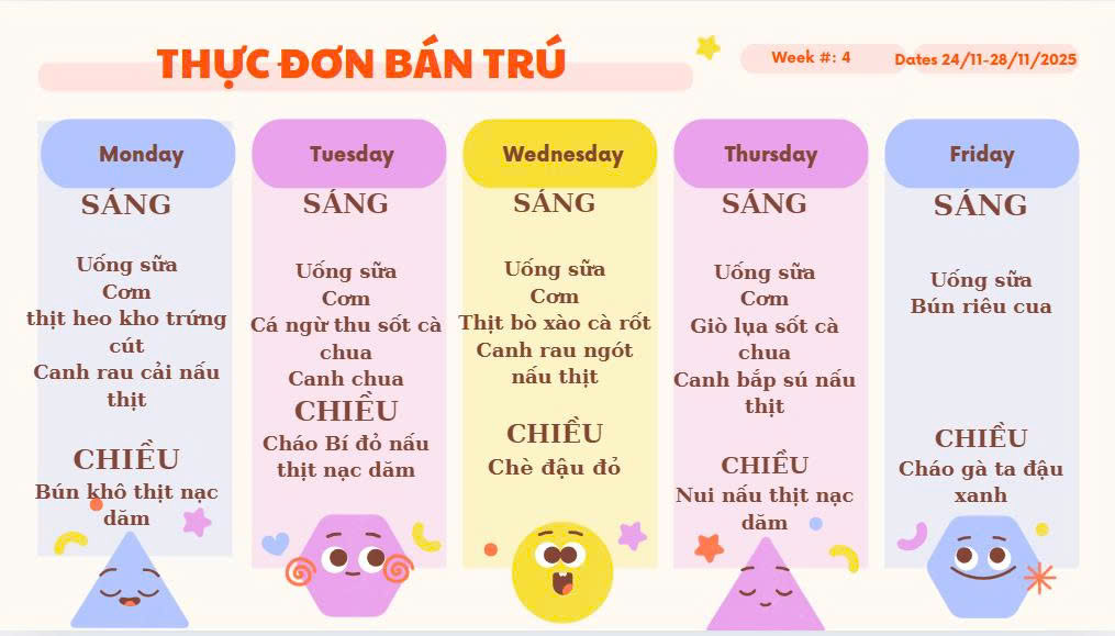 GỬI ĐẾN QUÝ PH THỰC ĐƠN ĂN TRƯA CỦA CÁC CHÁU THÁNG 11/2025