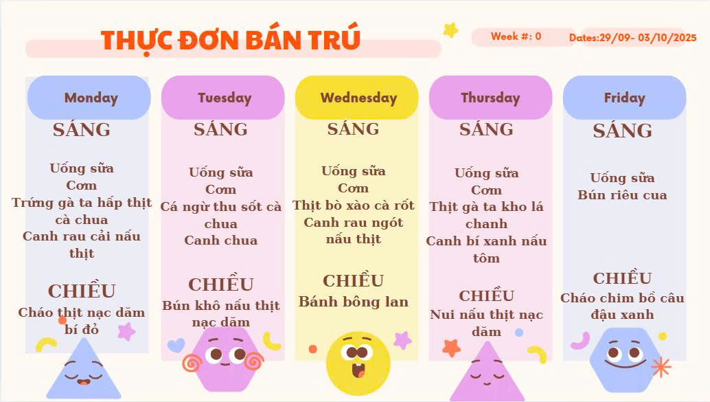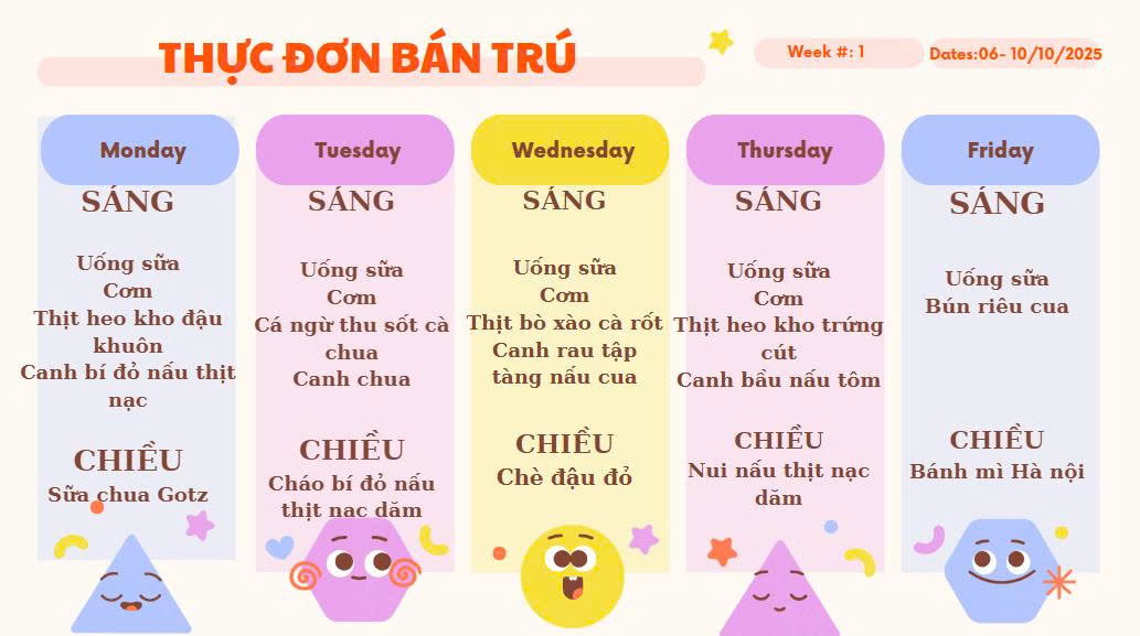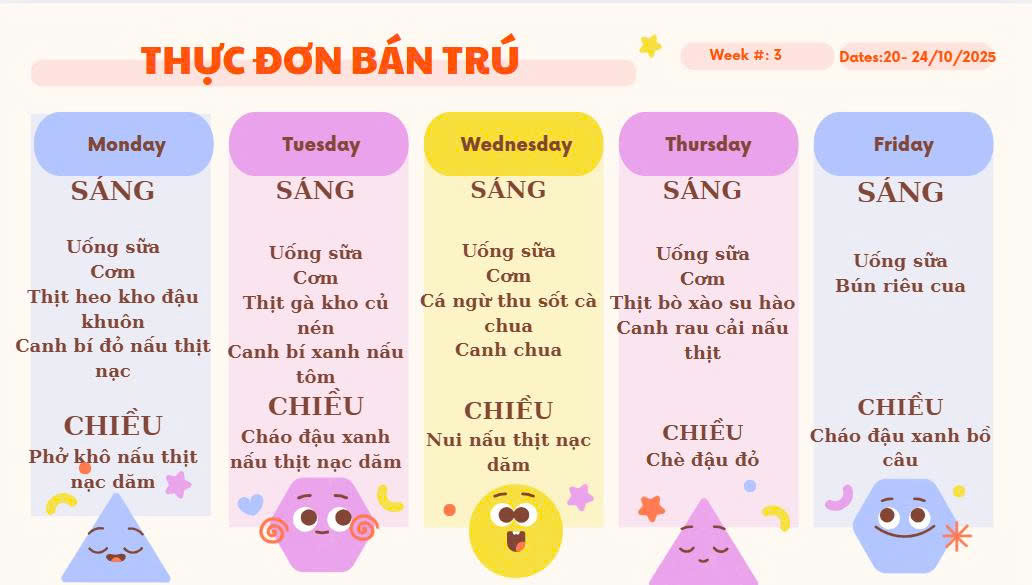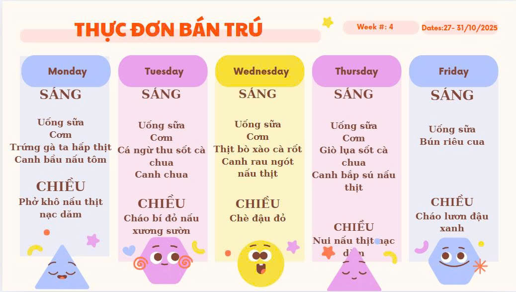 Mời ba mẹ cùng theo dõi thực đơn ăn trong tháng 10 của các con ạ.