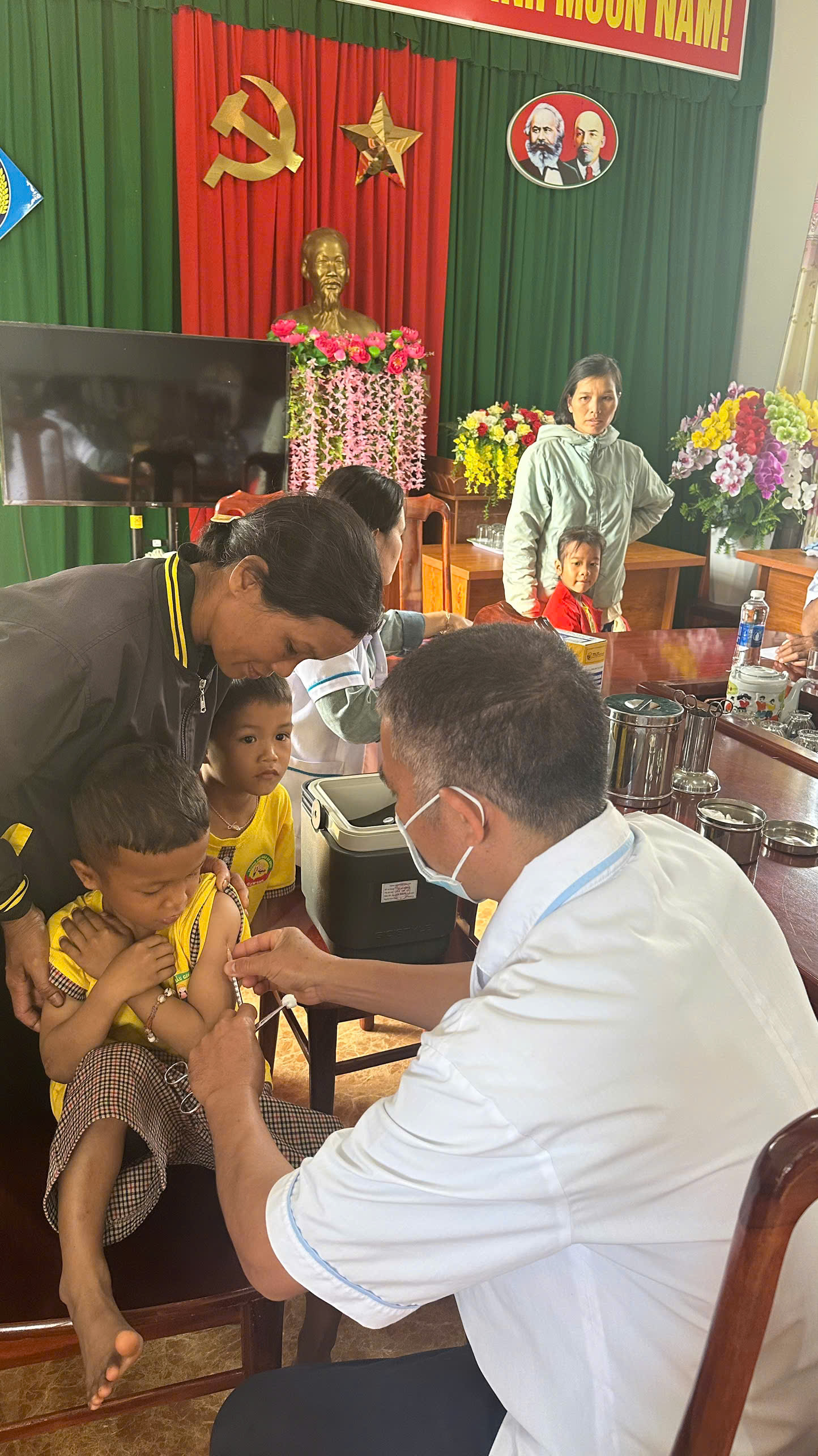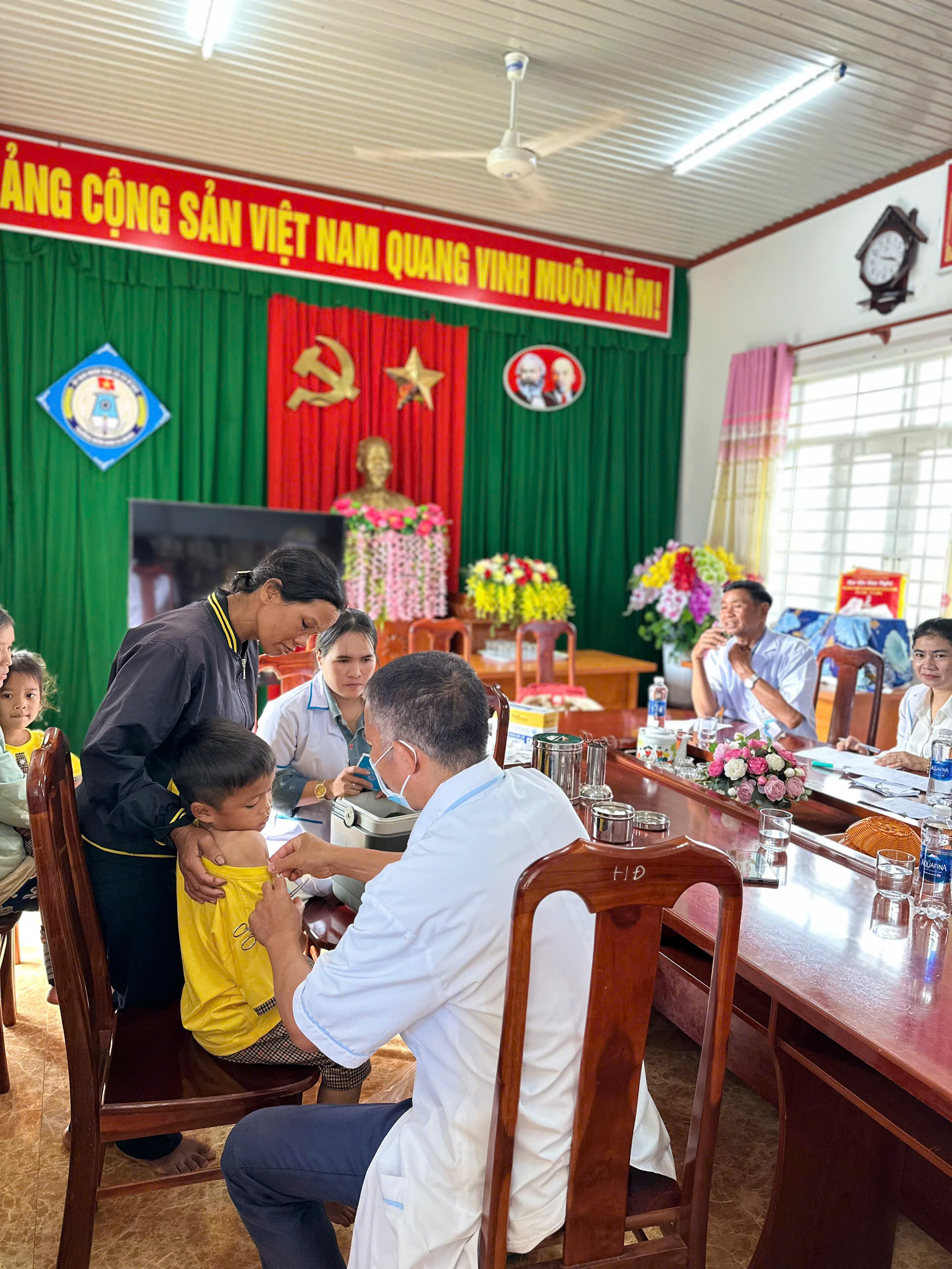 Sáng ngày 24/12/2025, Trường Mầm non Ea Hding đã phối hợp với Trạm Y tế tổ chức tiêm vaccine bù liều cho các cháu học sinh tại trường.